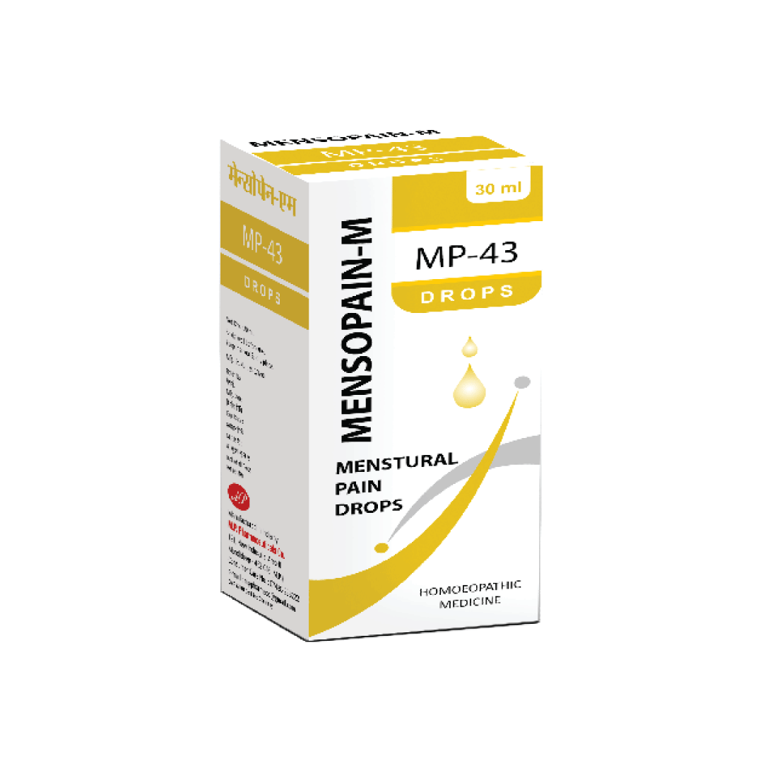 Indication: MP-43 Mensopain-M drops are a safe and efficacious remedy that helps relieve abdominal cramps, backache and body ache associated with painful menses.